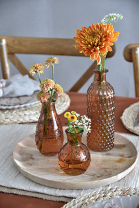 Es sind die kleinen Dinge, die uns jetzt guttun: Duftkerzen mit Noten von Zedernholz und Feige, handgetöpferte Vasen, getrocknete Wildblumen oder Lampen mit warmem Licht. Auch Holz in all seinen Facetten – ob roh, geölt oder antik – bringt Naturverbundenheit ins Zuhause und lässt uns innerlich zur Ruhe kommen.